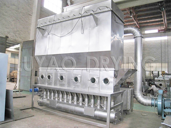 The bulk solid material is fed into the fluidized bed dryer by a feeder.